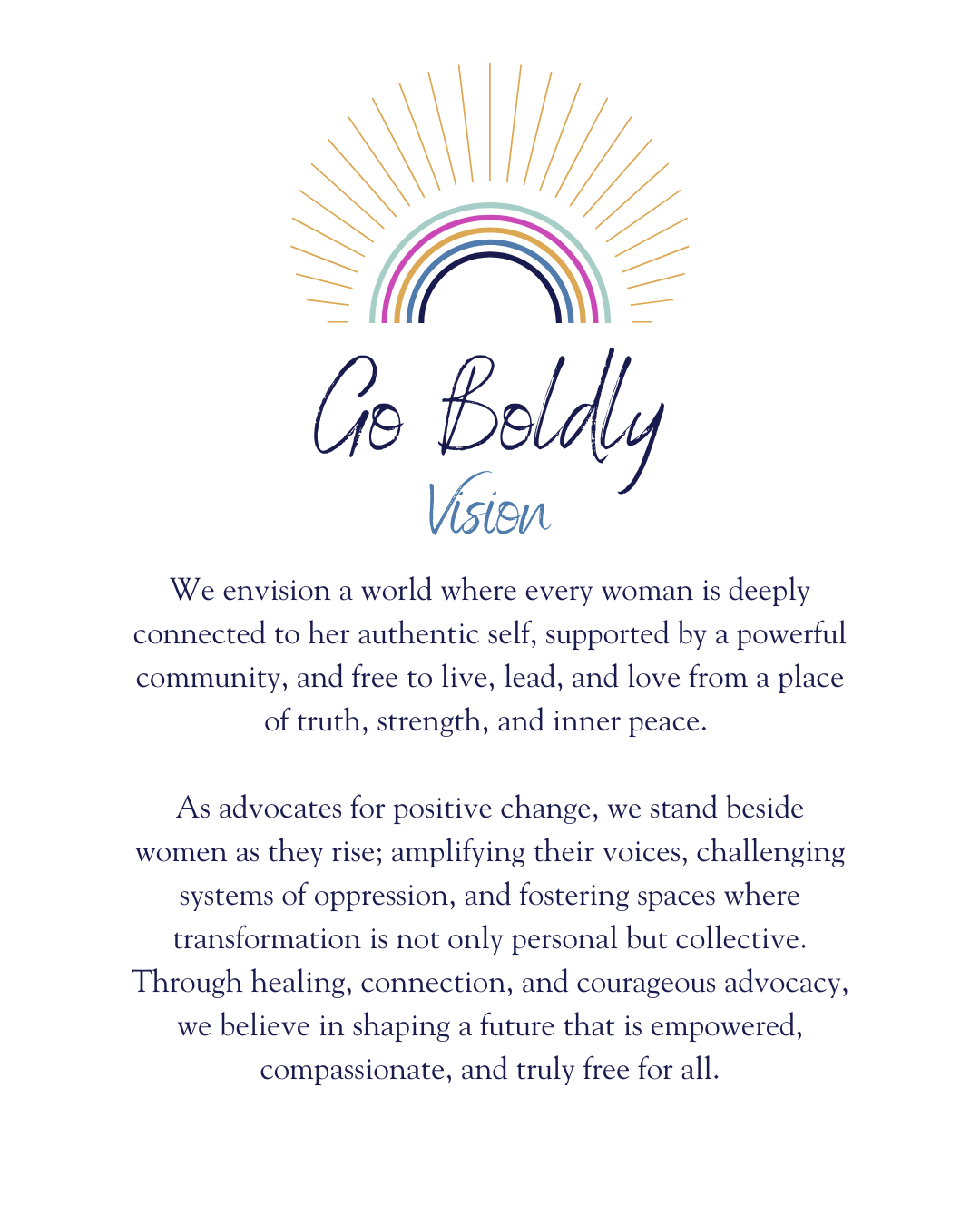 Go Boldly Initiative was born from the deep need to serve from a place of purpose and passion.